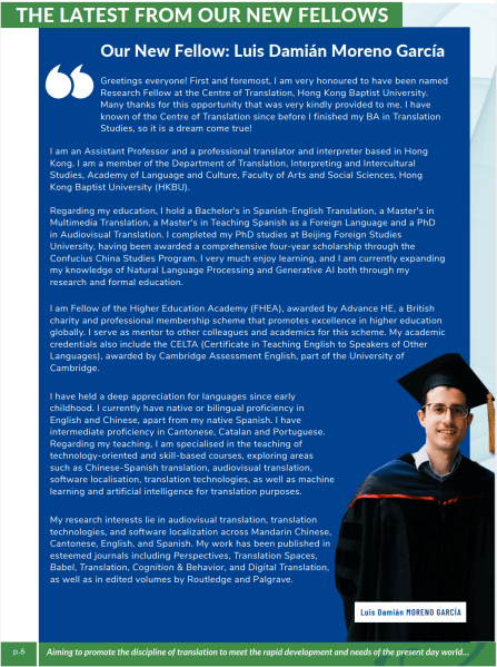 Hi! I’m Luis Damián Moreno García. I am an Assistant Professor at Hong Kong Baptist University, Department of Translation, Interpreting and Intercultural Studies (TIIS), Academy of Language and Culture (LAC), Faculty of Arts and Social Sciences (FASS).